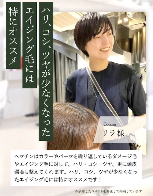 髪の主成分であるケラチンと結合してダメージを補修する「ヘマチン」を高濃度で配合した「髪の美容液」です。